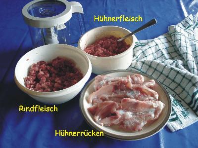 | hiervon Huhn ca. 150 Gramm | hiervon Rind ca. 350 Gramm | |