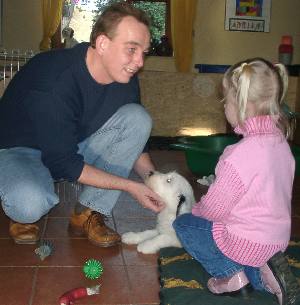 Ja und am Samstag kamen dann die ersten Frauchen und Herrchen, um uns in unsere neue Familien abzuholen. Als erster wurde "Chicco" Cyrano de Bergerac abgeholt ...
