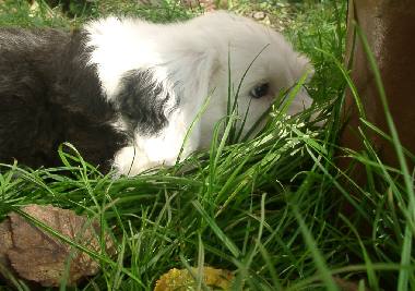Hallo ihr alle, Frauchen sagt: "So einen schönen Oktober hatten wir lange nicht mehr" und Mama sagt: "Als ich so alt war wie ihr, hatten wir Eis, Schnee und Frost." Was bitteschön sind Eis, Schnee und Frost ?!? Obwohl, ist uns eigentlich auch egal, das werden wir sicher noch früh genug erfahren, was das alles ist. Hier und heute jedenfalls scheint die Sonne und wir sind den ganzen Tag im Hof und im Dschungel unterwegs. "Dschungel ?" fragt ihr jetzt sicher. "Ja, Dschungel" sagen wir. Da waren wir heute nämlich. Aber mal ganz der Reihe nach. Gestern hat Herrchen uns die Ballkiste, die wir schon von drinnen kannten, im Hof aufgebaut. Das war eine Gaudi.