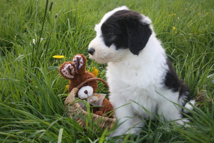 Earl of Dorincourt 'Sam'. Ernest Hemingway hört auf den Namen Die Tage hier bei uns bei sommerhaften Temperaturen sind toll. Herrchen sagt, so einen April habe er noch nie erlebt. So viel Sonne und so warm draußen. Wir spielen den ganzen Tag im Hof, machen jeden Tag einen Ausflug ins Grüne und lassen es uns auch sonst sehr gut gehen. Und Osternester haben wir auch schon gesucht ... das war eine Gaudi. Bis bald. Eure sechs Bushwagger