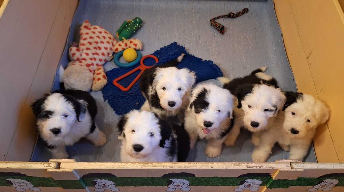 die Zeit rast. In den letzten drei Wochen, in denen wir keine Zeit hatten, etwas zu scheiben, ist soooooo viel passiert. Autofahrten, Spaziergänge, Tierarztbesuch mit Chippen und Impfen, Wurfabnahme durch die Zuchtwarte des DOESC und immer wieder Ausflüge. ![]() ![]() Und als Höhepunkt dann auch noch Weihnachten. ![]() ![]() Unten findet ihr ein paar Fotos vom Spaziergang am 21.12., dem Tag, an dem wir acht Wochen alt wurden und außerdem ein paar Weihnachtswichtel-Fotos (KI-generiert). Eure sechs Zwerge Bushwagger's Martha my dear (Martha) ![]() ![]() Bushwagger's Minerva McGonagall ![]() ![]() Bushwagger's Me and Bobby McGee (Flocky) ![]() ![]() Bushwagger's Mighty Quinn (Anton) ![]() ![]() Bushwagger's Marty McFly (Marty) ![]() ![]() Bushwagger's Malaika (Emma) ![]() ![]()