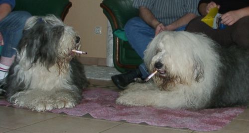Herrchen und Frauchen waren zwischenzeitlich Welpen ansehen, wohl um festzustellen, was so alles auf sie zukommt. Auf sie zukommt ... ha ! Uns fragt wohl keiner, was auf UNS und Mama zukommt.