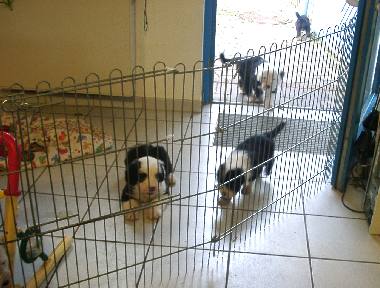 Hallo allerseits, Herrchen hat vielleicht Ideen ! "So", hat er gesagt, "es ist Prägephase und ihr solltet euch jetzt an Büroarbeit gewöhnen." Und dann hat er in seinem Büro rumgeräumt, hat unser Welpengitter aus dem Wohnzimmer dort aufgebaut und die Tür zum Hof aufgemacht.