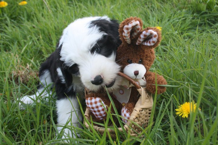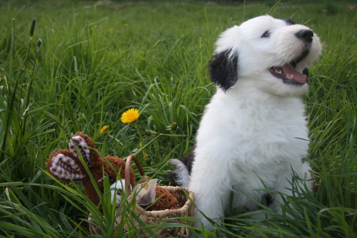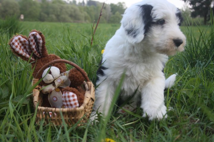 Earl of Dorincourt 'Sam'. Ernest Hemingway hört auf den Namen Die Tage hier bei uns bei sommerhaften Temperaturen sind toll. Herrchen sagt, so einen April habe er noch nie erlebt. So viel Sonne und so warm draußen. Wir spielen den ganzen Tag im Hof, machen jeden Tag einen Ausflug ins Grüne und lassen es uns auch sonst sehr gut gehen. Und Osternester haben wir auch schon gesucht ... das war eine Gaudi. Bis bald. Eure sechs Bushwagger