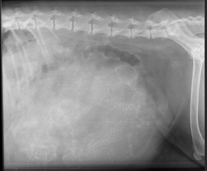 Morgens um 6:25 Uhr begann es, aber eigentlich begann es ja schon am Vorabend, an Mamas 63. Trächtigkeitstag. Da waren Frauchen und Herrchen mit Mama nämlich nochmal beim Tierarzt. Der hat nachgeschaut, wieviele wir denn jetzt eigentlich genau sind. Wir selbst wussten es ja, aber alle anderen gingen bis dahin von drei bis vier Babys aus, weil das der Tierarzt beim Ultraschall gesehen hatte. Aber Mamas Bauchumfang sagte etwas ganz anderes und daher wurde sie geröntgt. Na die haben aber dumm aus der Wäsche geschaut, als sie das Röntgenbild (siehe unten auf der Seite) sahen und lustiges Wirbelsäulenzählen spielten. Sechs fanden sie. Oder sieben? Oder gar acht? Und dann warteten sie. Wie gesagt bis um 6:25 Uhr. Denn dann kam unser Mädel auf die Welt. 6:25 Uhr Mädchen 319 Gramm Es war von vornherein klar, dass ein Mädel im Hause bleiben sollte – quasi als Stammhalter der Bushwagger. Nachdem das also erledigt war, kamen nach und nach vier Jungs.