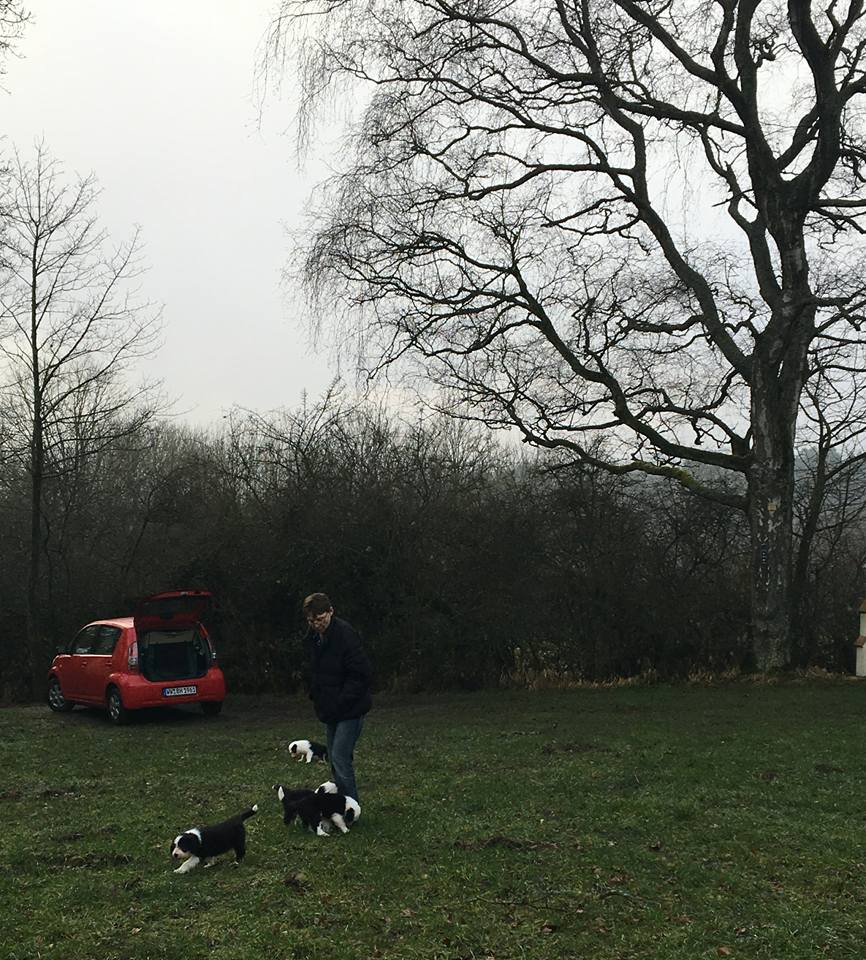 Hallo, Welt, heute haben Herrchen und Frauchen uns in ein Auto gesetzt. Bis vorher wussten wir gar nicht, was ein Auto ist und jetzt sind wir schon mitgefahren. Und es war gar nicht schlimm, denn wir sind zu einer großen grünen Wiese gefahren, wo wir ganz toll toben konnten. Das machen wir jetzt immer. Jeden Tag. Mindestens.