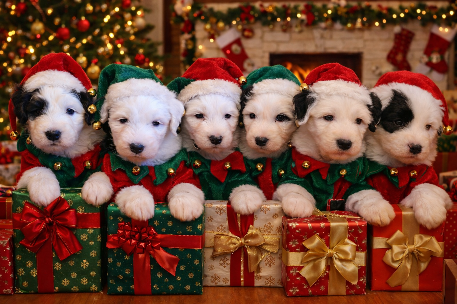 die Zeit rast. In den letzten drei Wochen, in denen wir keine Zeit hatten, etwas zu scheiben, ist soooooo viel passiert. Autofahrten, Spaziergänge, Tierarztbesuch mit Chippen und Impfen, Wurfabnahme durch die Zuchtwarte des DOESC und immer wieder Ausflüge. ![]() ![]() Und als Höhepunkt dann auch noch Weihnachten. ![]() ![]() Unten findet ihr ein paar Fotos vom Spaziergang am 21.12., dem Tag, an dem wir acht Wochen alt wurden und außerdem ein paar Weihnachtswichtel-Fotos (KI-generiert). Eure sechs Zwerge Bushwagger's Martha my dear (Martha) ![]() ![]() Bushwagger's Minerva McGonagall ![]() ![]() Bushwagger's Me and Bobby McGee (Flocky) ![]() ![]() Bushwagger's Mighty Quinn (Anton) ![]() ![]() Bushwagger's Marty McFly (Marty) ![]() ![]() Bushwagger's Malaika (Emma) ![]() ![]()