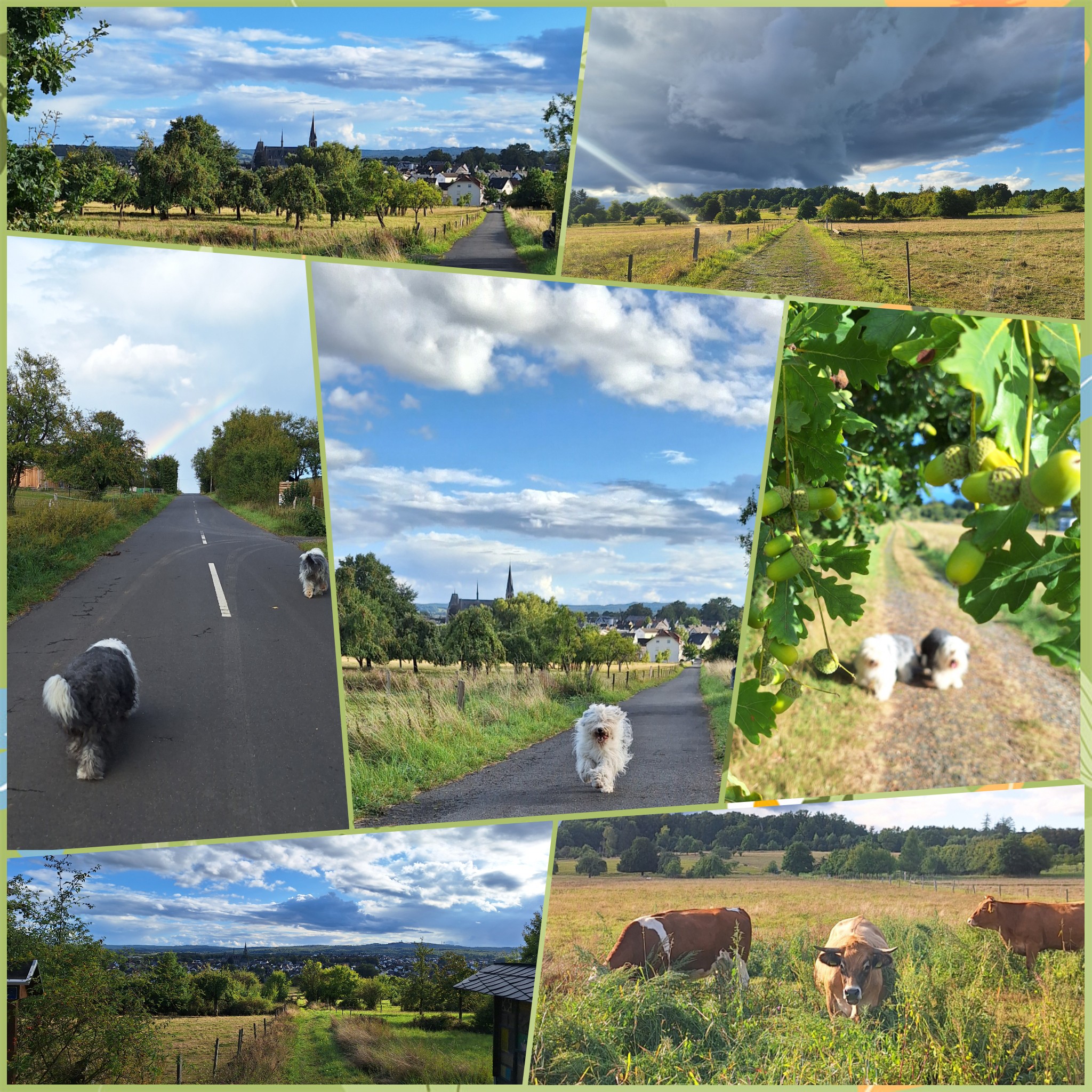 Jedenfalls hat das ganze mit diesem 'schwanger' auch seine guten Seiten. Unsere Spaziergänge zur Zeit sind absolute Highlights. Der Spätsommer und der Herbst geben noch mal ihr bestes und meistens sind Herrchen, Makeba und ich gemeinsam unterwegs. Schön langsam, wie es sich gehört, aber doch recht lange und weit. Ansonsten gibt es nicht viel zu berichten, nur, dass ich Hunger habe. Ständig. Das heißt nicht, dass Frauchen und Herrchen sich keine Mühe geben, mich mit reichlich tollen Sachen zu versorgen, aber das könnte gerne etwas mehr sein. Wer soll denn davon satt werden? Wenn die so weitermachen, trete ich in den Streik, dann können die sich jemand anderen suchen für dieses 'schwanger'.