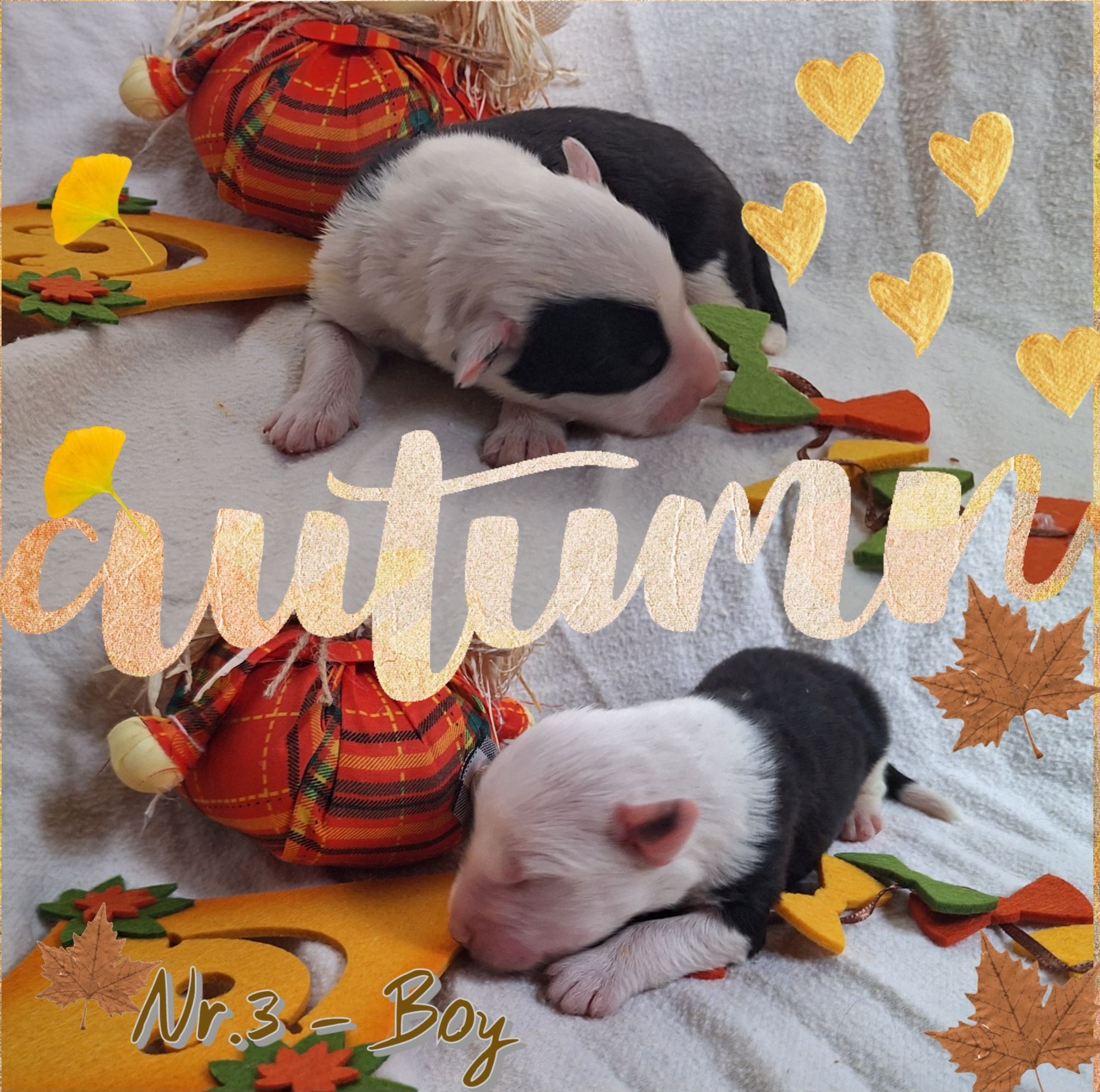 Die Nr.1 trägt übrigens den Arbeitsnamen Maulende Myrte bzw. Moaning Myrtle - dreimal dürft ihr raten, wieso. Liebe Grüße, Udo (Herrchen) Und hier noch die aktuellen Fotos vom Besuch in Herrchens Fotostudio am 29.10.2025. Da sind die Welpen drei Tage alt. ![]() ![]() ![]() ![]()